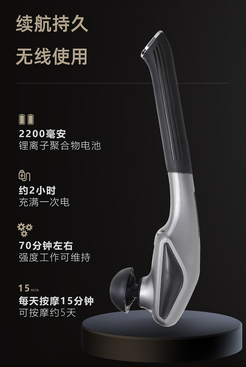 5. 12V 1A,2200maH,充電滿約2.0H,5檔力度,約90min.