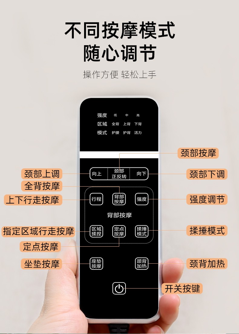 2.背部:上來來回按摩,有2組共4個揉捏按摩頭,有2組2個敲擊按摩頭。