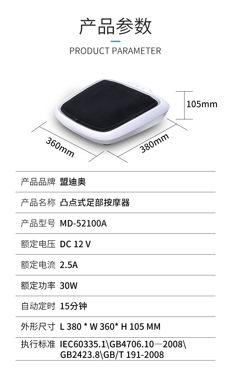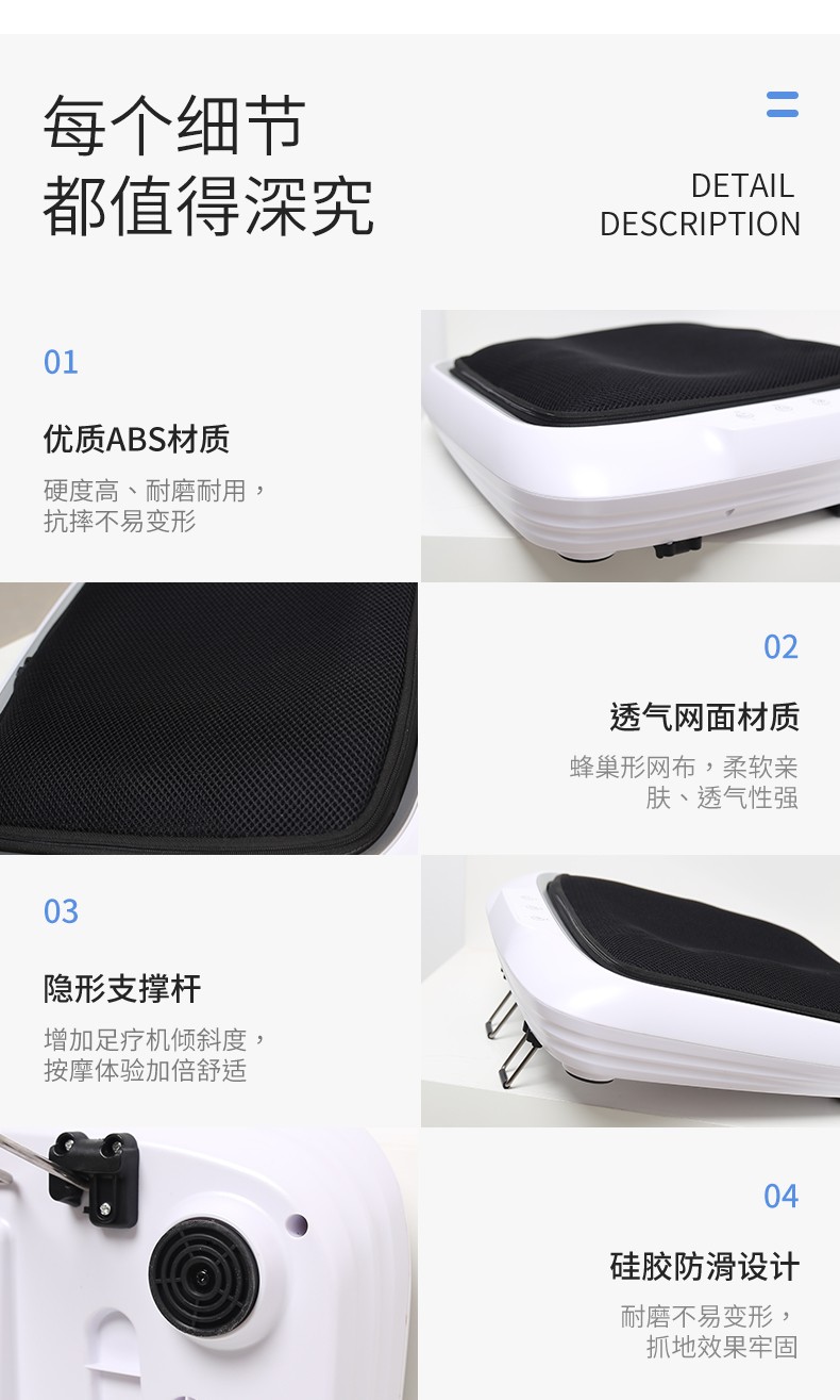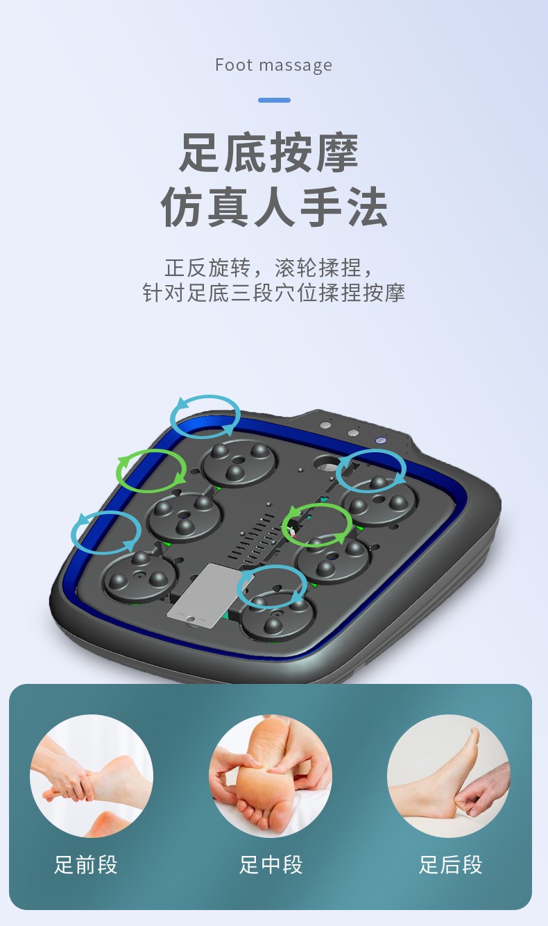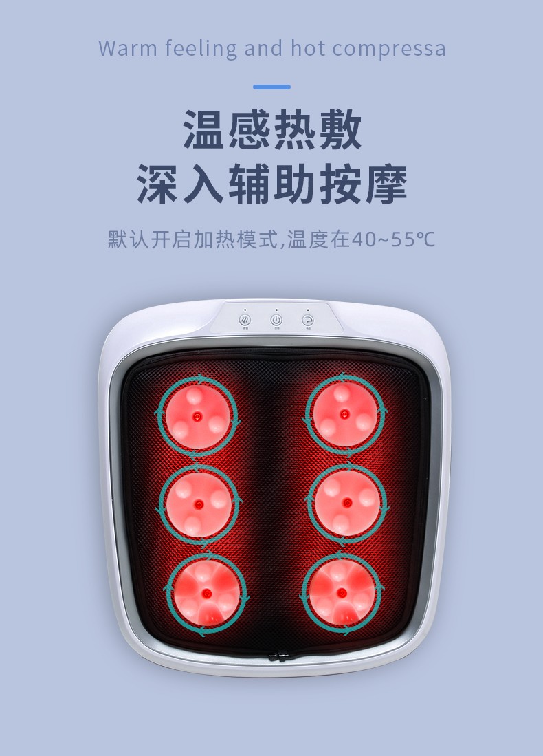 功能特征:腳底六個按摩頭,三檔力度調節,按摩頭正反轉,按摩頭加熱,15分鐘定時,可拆洗腳套,按鍵控制面板