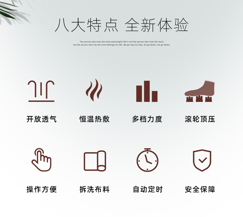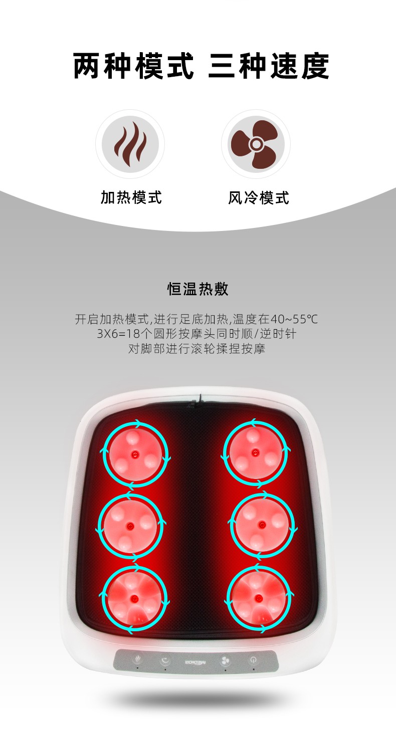 功能特征:腳底六個按摩頭,三檔力度調節,